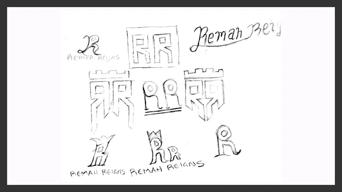 After careful deliberation, the chosen concept features two mirrored letter R’s with a crown on top, symbolizing royalty. Together, they form the shape of a gladiator’s face shield, blending strength, style, and regal identity.